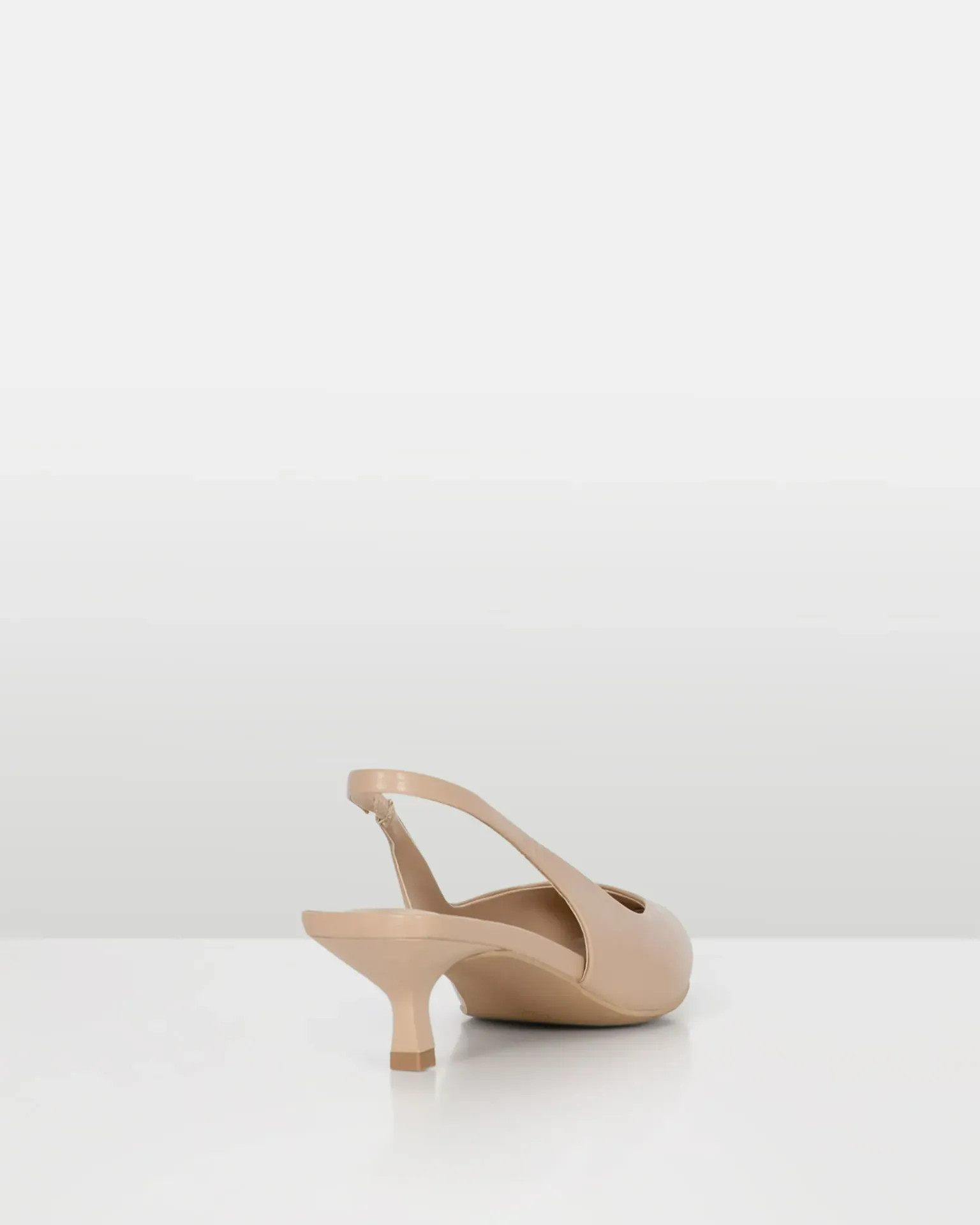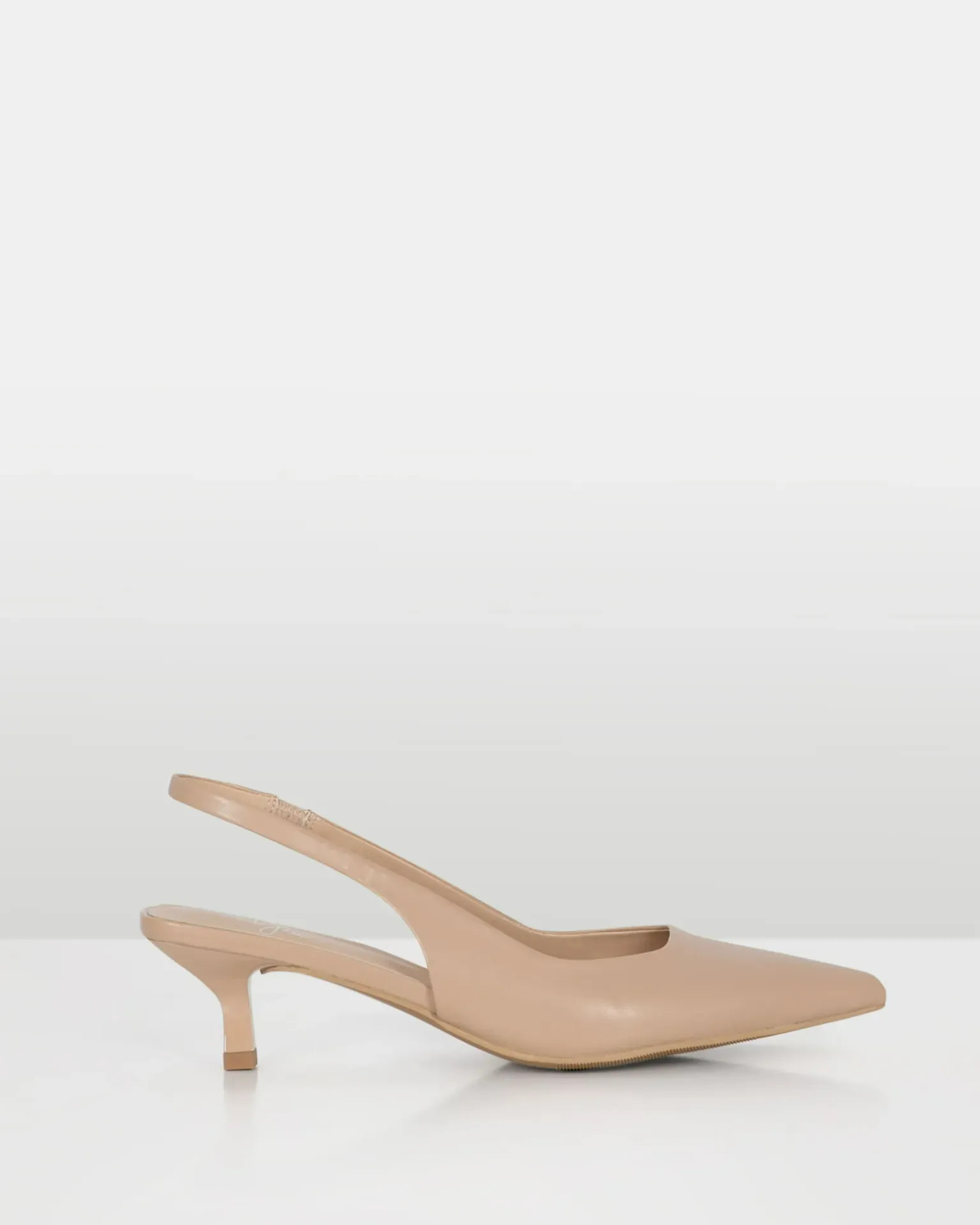 Get straight to the point in Etta! The convenient slingback design provides an easy way to put on and remove without a struggle. Featuring a pointed-toe design and a short, thin heel, Etta is a timeless court heel that you can wear to your next big event or even to the office! Material: Synthetic (Vegan Friendly) Heel height: 5.5cm
